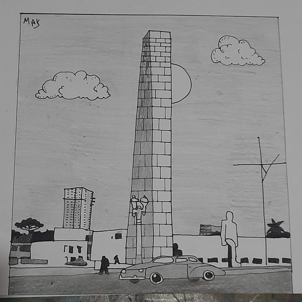 Com 44 metros, o que equivale a um prédio de 15 andares, o Obelisco da Praça 19 de Dezembro foi inaugurado em 1953, no mesmo dia em que, cem anos antes, o Paraná conquistava a sua emancipação política. Obra do escultor Erbo Stenzel (1911-1980), um descendente de austríaco e alemães, o monumento foi erguido em concreto e coberto com granito em suas quatro faces. Stenzel é responsável também pelas estátuas do “Homem Nu” e da “Mulher Nua”, estas em parceria com Humberto Cozzo (1900-1981). Curiosamente, a Deutsche Schule, escola alemã em que Stenzel estudou quando criança, ficava no mesmo local. Arte inspirada em foto tirada no mesmo ano da inauguração do monumento.